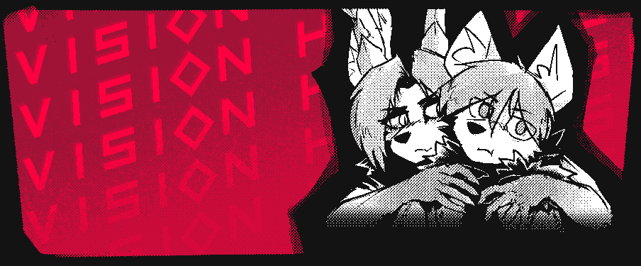 Vision Haze is a scifi webcomic with paranormal elements and anthro characters. The story follows Dan, a wolf guy and slacker, who has become partially possessed by Haze, a hapless demonic spirit girl. Dan must find a way to get her out of his head. It's not all bad, though, as there can be fringe benefits to being partially possessed.